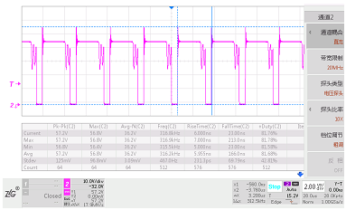 圖1 穩態工作時MOS管波形Vds_max=57.2V