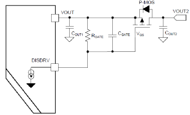 從上圖我們可以看到,所需要的外部器件很少。該芯片還提供一個單獨(dú)的 pin 腳 DIS來驅(qū)動負(fù)載輸出端的外部 FET(P-FET),在設(shè)備關(guān)斷或者輸出短路時它能完全斷開輸入與輸出的連接。啟動時,通過內(nèi)部電流源來控制外部 P-FET 開關(guān)。在關(guān)斷或者輸出短路時,將輸出與輸入側(cè)隔離,如下圖: